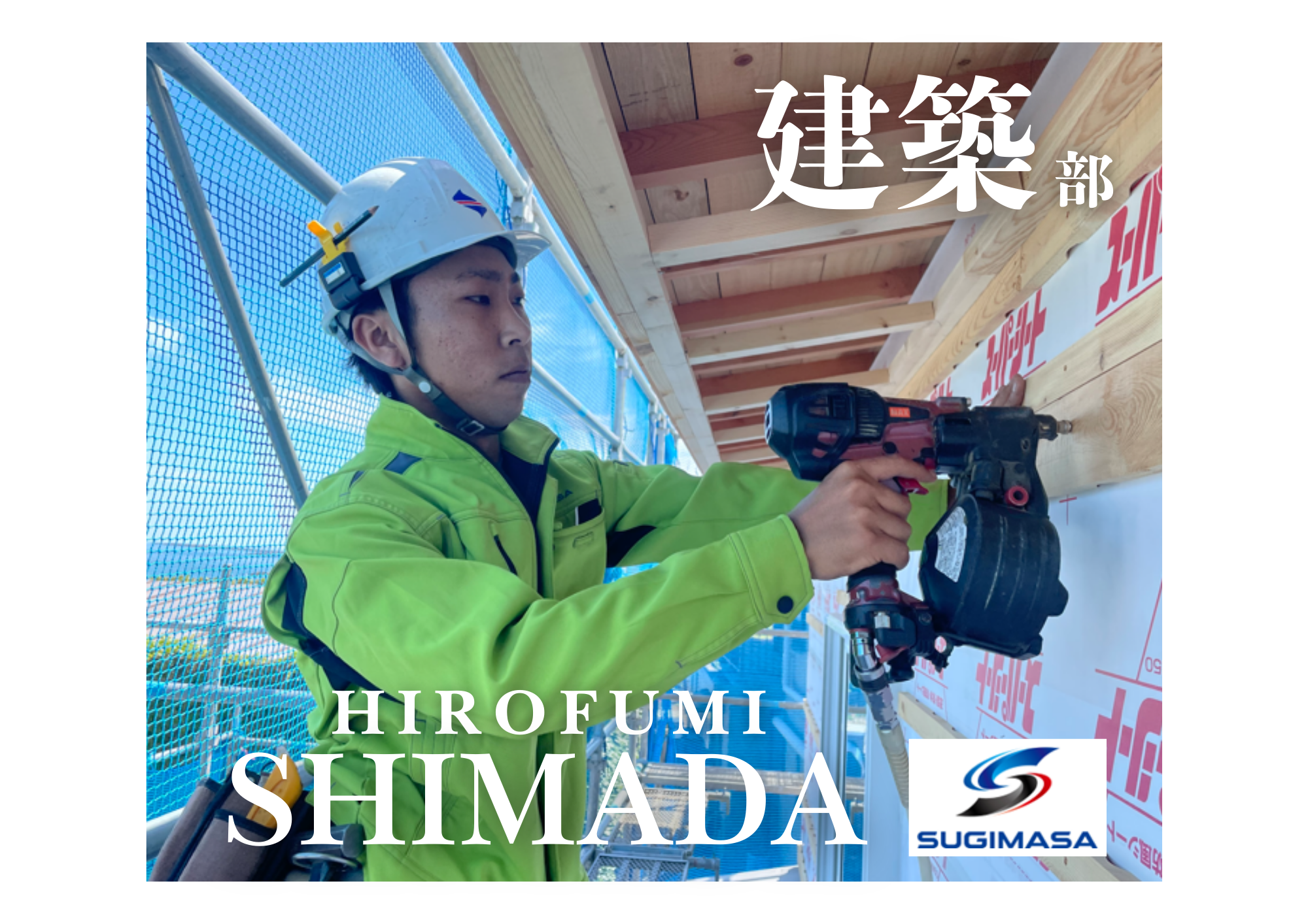 『地図に残る。形に残る。』それがこの仕事の一番の魅力です。日々、技術を学び、お客様はもちろん他の職人たちから信頼されるような職人を目指したい。自分が建てた建物・家が、長く大事に住んでもらっていることに喜びを感じます。